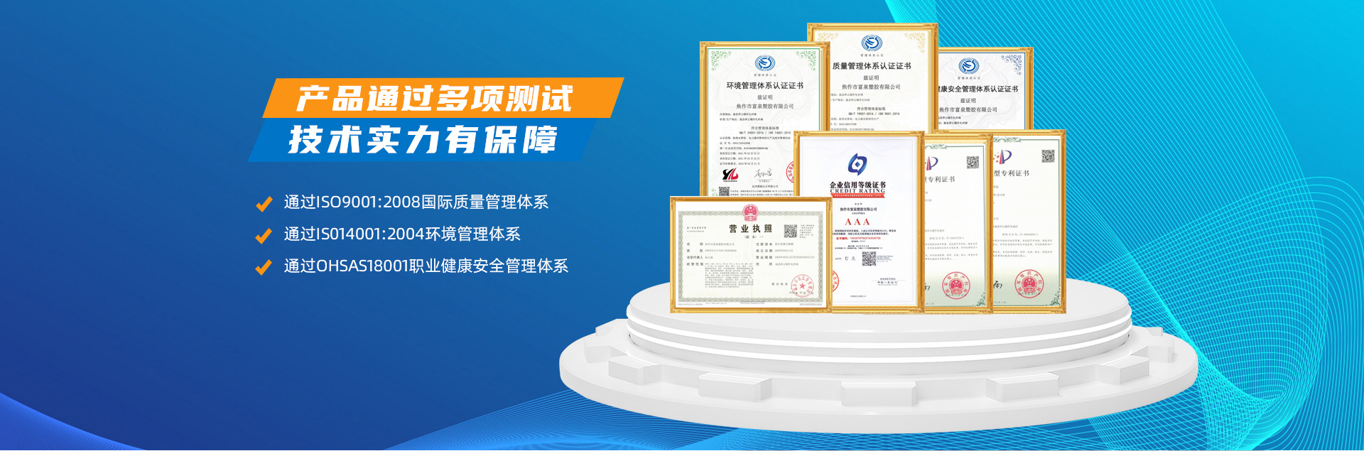 - 焦作市富泉塑膠有限公司,創(chuàng)立于1995年,是一家集研發(fā)、設計、生產、銷售為一體的大型管材企業。公司位于太極故里、黃河之濱一一河南焦作溫縣。公司占地128畝,現有職工210余人,其中具有中技術職稱的19人。生產、檢驗設備58臺(套),包括PVC實壁管生產線11套、PE實壁管生產線12套、HDPE雙壁波紋管生產線6套、PVC雙壁波紋管生產線5套,檢驗設備14臺(套)。主要產品有:Φ20mm-630mm、各種壓力規(guī)格的PVCU、PVC-M、PE給水管材,PVC-U節(jié)水灌溉管材,HDPE燃氣和礦用管材,DN200-800mm的HDPE、PVC雙壁波紋管及各種噴灌、滴灌工程材料。承接大中型市政供排水、飲水安全及節(jié)水灌溉等工程?! 「蝗苣z公司重視產品的質量、安全、環(huán)保和節(jié)能,在同行業中率先完成了“新華節(jié)水產品認證”,全方面通過ISO9001:2008國際質量管理體系、IS014001:2004環(huán)境管理體系和OHSAS18001職業健康安全管理體系的一體化導入,并建立起規(guī)范的現代企業管理體系。公司以“質量”為先導,采用質量跟蹤、多環(huán)節(jié)把關的方法,組建具有行業水準的企業技術檢測中心,常年委托水利部節(jié)水灌溉設備檢測中心、河南省產品質量監(jiān)督檢驗院對產品跟蹤檢測,并由中國人民保險公司承保產品質量。公司連續(xù)多年被河南省水利廳確定為“安全飲水設備、節(jié)水灌溉設備”定點生產企業,并獲得“中國名優(yōu)產品”“質量、服務、信譽AAA企業”“河南省**產品”“河南省水利企業”“河南省守合同、重信用企業”等榮譽稱號?! 「蝗苣z公司堅持“用戶為上”的服務理念,長期以來,全方面關注客戶價值,不斷提升服務水平。服務隊伍常年為客戶的產品設計、施工、安裝提供合理的方案和全程細致、周到、**、快捷的技術服務。公司自成立以來,一直堅持以人為本的宗旨,塑造企業形象,并致力于新產品的開發(fā),憑借雄厚的技術開發(fā)能力,先進的工藝制造流程,嚴格的質量管理保證體系,優(yōu)良的售后服務網絡,已成為河南省大的飲水、灌溉及排水管材設備制造商。產品暢銷全國,而且還以公司雄厚的綜合實力在業界中占據著重要的地位。